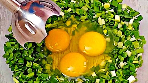 Просто взбиваем лук с яйцом и получаем вкусные луковые лепёшки за 5 минут
