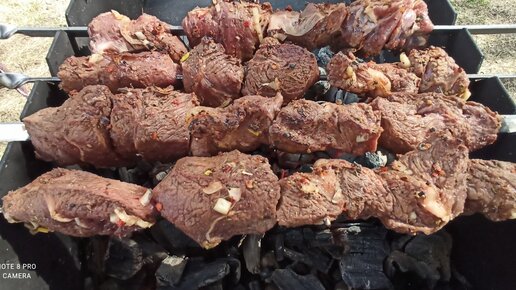 Шашлык в маринаде из киви.Шашлык из говядины.