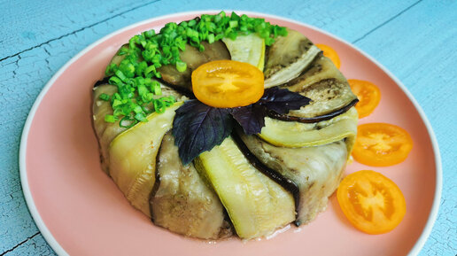Кус кус с курицей в коконе из баклажанов и кабачка.