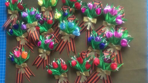 Далее: как сделать букет-брошь на Георгиевской ленте ко Дню Победы