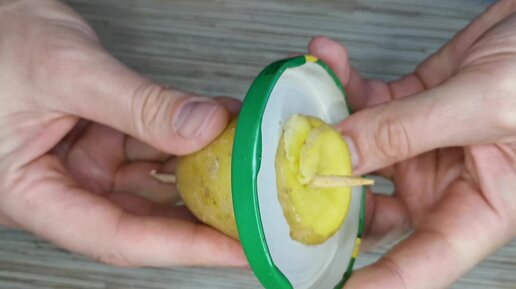Сделал картофелерезку из обычной крышки, порезал картошку, пожарил "спиральки" на палочке