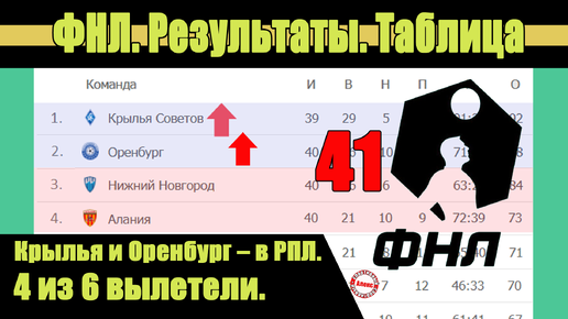 Футбол России. ФНЛ. 41 тур. Результаты, расписание, таблица.