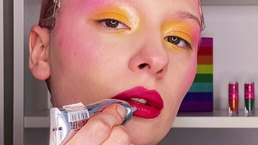 Макияж на вечеринку в технике дрейпинг с глянцевыми губами. Покрасила волосы тенями для глаз