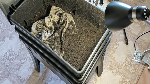 Кормление червя и осмотр вермикомпостера получил первые ростки яблони