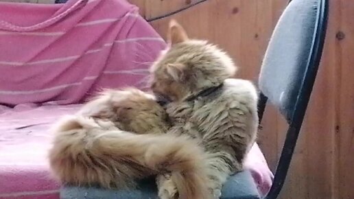 Мейн-кун умывается. С добрым утром!