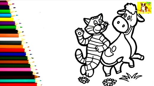 Каникулы в Простаквашено.Рисунок раскраска для малышей.