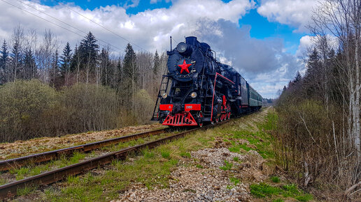 Пригородный ретро-поезд "Селигер" 9 мая следует на перегоне Фирово-Осташков