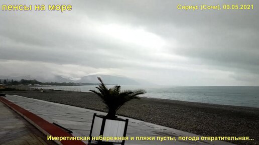 Сочи, 09.05.2021, пляжи и набережные Имеретинки пусты, погода отвратительная, дождь и ветер.