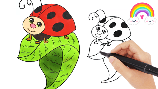 Как нарисовать БОЖЬЮ КОРОВКУ шаг за шагом | Простые уроки рисования | Рисунки для срисовки ❤