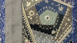Декоративные стежки, лоскутный блок «Окно». Крейзи квилт в белом.