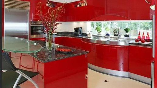 Интерьер кухни в красных тонах. Особенно мне понравился 8 вариант