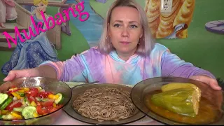 Мукбанг перцы фаршированные, лапша гречневая/ mukbang гречневая лапша, салат летний овощной, перец фаршированный/еда на камеру.