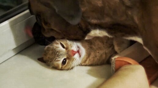 Как собака мучает кошку 😂
