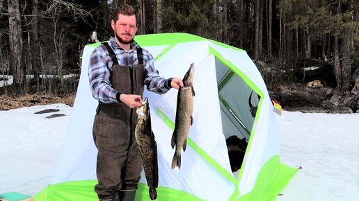Ловля налимов и щук на самоловки в Карелии. Две ночи в палатке на льду.
