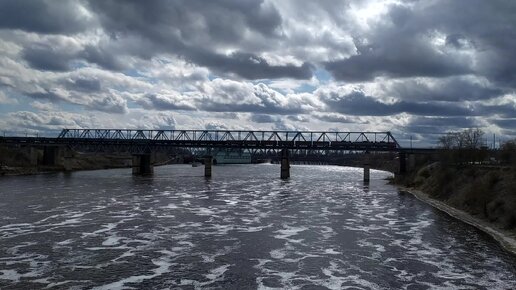 Красивый вид на Волхов и ж/д мост.