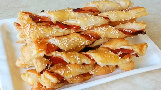 Слойки с беконом — вкусный перекус из 2-х ингредиентов