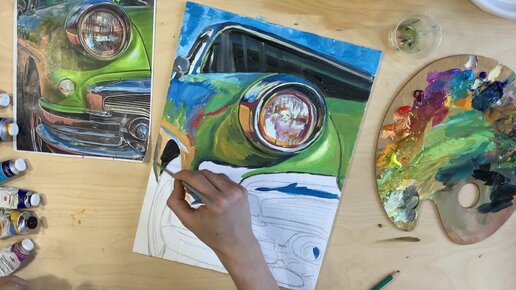Как нарисовать Ретромашину / Уроки рисования для начинающих