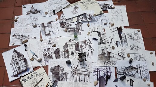12 Мая в Италии и России. Скетчинг, море, замостил террасу Пезаро рисунками, в Питере - танцевать