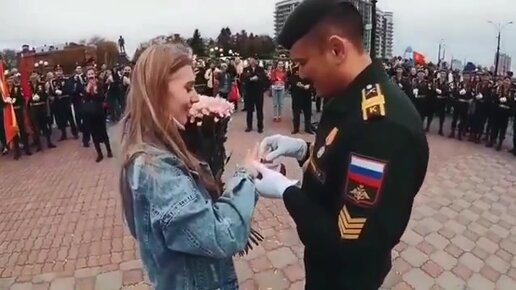 В Благовещенске в День Победы курсант необычно сделал девушке предложение руки и сердца