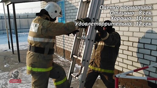 Подъём по установленной выдвижной лестницы в 3 этаж учебной башни. Норматив 5.8