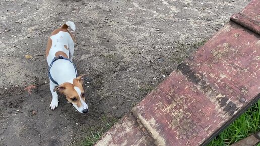Впервые привели нашего Джек Рассела на площадку для собак. Почти выполнил два задания