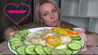 Мукбанг Вареники сырым картофелем и салом, овощи / Mukbang вареники с картофелем///еда на камеру.