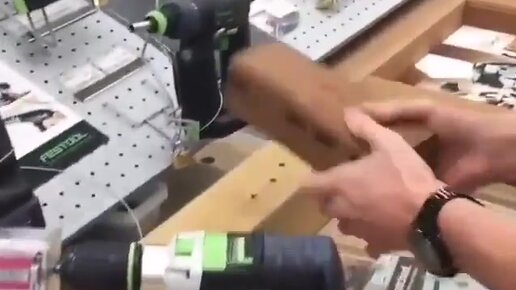 Эта магнитная дрель может вращать винты внутри куска дерева.