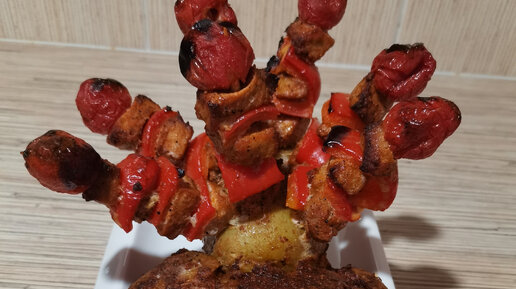 Варёная картошка в мундирах запеченая в духовке с мясом и специями. Показываю процесс приготовления
