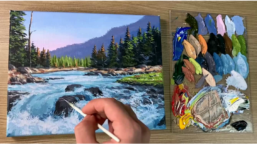 Рисуем красивый пейзаж пошагово акриловыми красками