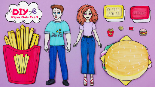 ЗАКАЗАТЬ ДОСТАВКУ БУРГЕРА! РИСУЕМ И ИГРАЕМ С БУМАЖНЫМИ КУКЛАМИ