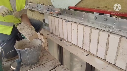 Сделали опалубку , кладём первый подвесной ряд кирпича