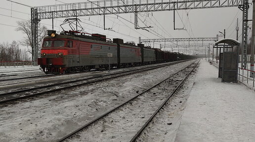 Электровоз ВЛ11.8-717 с грузовым поездом.