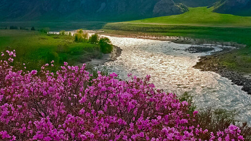 Сибирская сакура:в Горном Алтае зацвел маральник. Красивое супер видео