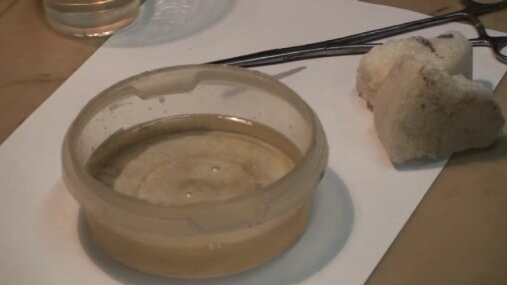 Изготовление шлифов горных пород. 1 этап (Обрезка образца со стекла для работы)
