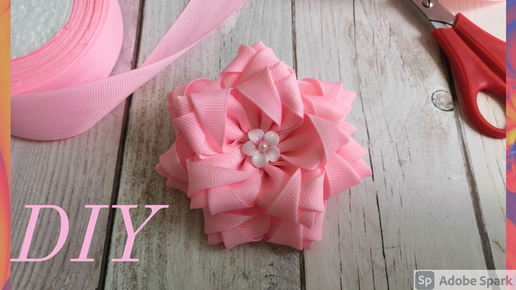 Пышный цветок из лент/Бант из репсовой ленты 2,5 см/Многослойный бант/канзаши/МК/Summer bow/Lush bow