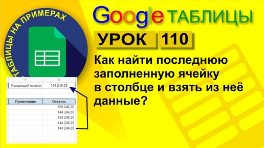 Google Таблицы. Урок 110. Как найти последнюю заполненную строку в столбце и взять из неё данные?