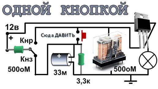 Управление ЛЮБОЙ МОЩНОЙ НАГРУЗКОЙ одной КНОПКОЙ БЕЗ ФИКСАЦИИ.