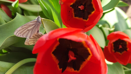 Показываю как выросли и расцвели тюльпаны возле дорожки.