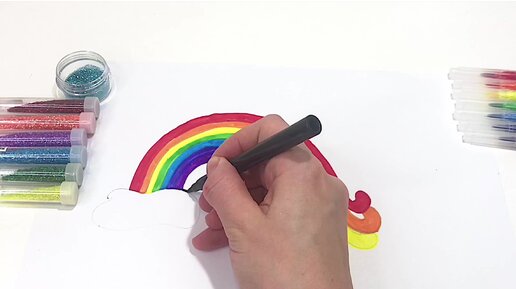 Рисование для детей- рисуем радугу, учим цвета и счет. Радуга блестками.