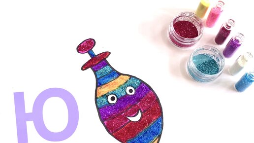 Буквы для детей. Учим букву Ю. Рисуем юлу ираскрашиваем ее блестками.