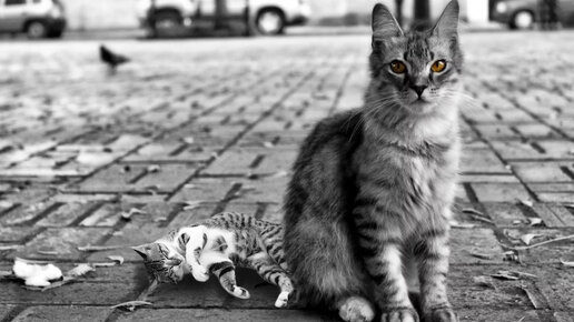 Рядом с кошкой на асфальте лежал котёнок. Она просила помочь, но люди проходили мимо