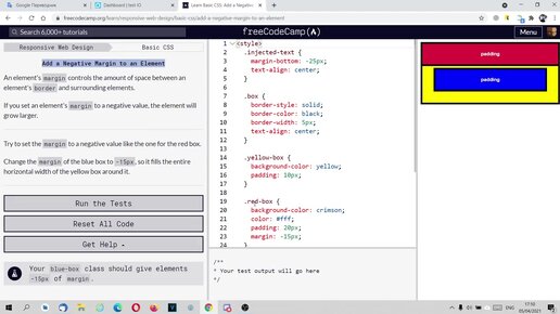 Изучаем HTML на freecodecamp Урок 24 Add a Negative Margin to an Element