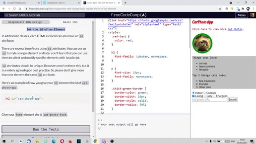 Изучаем HTML на freecodecamp Урок 33 Set the id of an Element