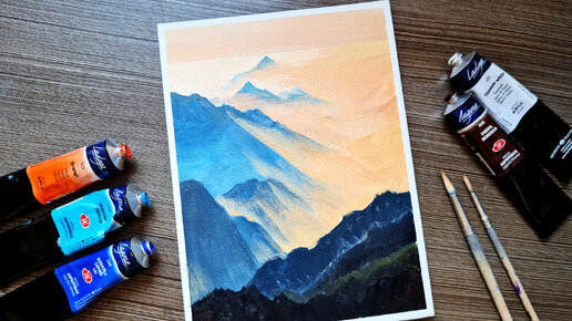 Далее: Фиолетовые горы на желтом небе. Пейзаж акрилом, картина, с пошаговой инструкцией!