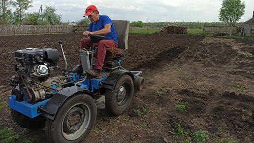 Мой самодельный мини-трактор в борозде