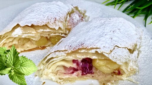 Изысканный десерт всего за 10 минут. Штрудель с яблоками.