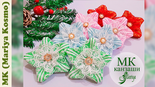 мк - резинки канзаши с парчей и кружевом для начинающих | kanzashi | Mariya | Christmas | DIY