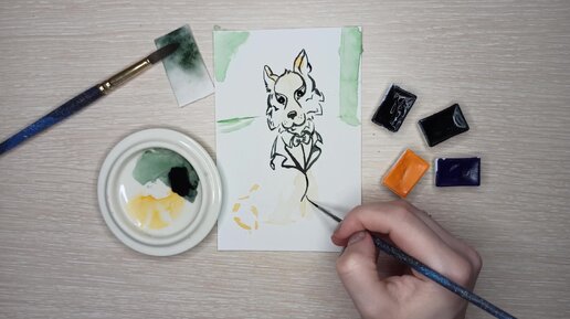 Создаю набросок корги в костюме. Ну очень деловой пес