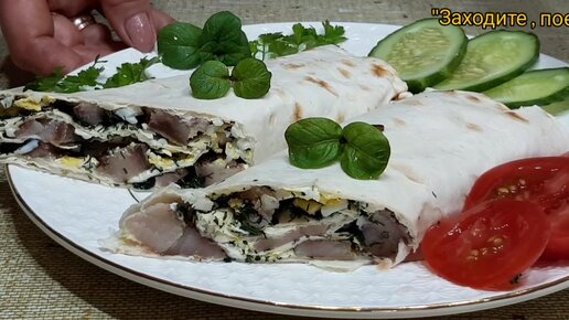 Купила лаваш и сделала из него рулет. Смотрите, что получилось.
