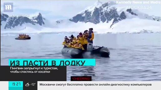 Пингвин запрыгнул в лодку, спасаясь от косаток: видео